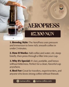 #ZumaCoffee #AeroPress #CoffeeCulture #MadeInNigeria #SpecialtyCoffee #CoffeeLovers #AbujaBusinesses
